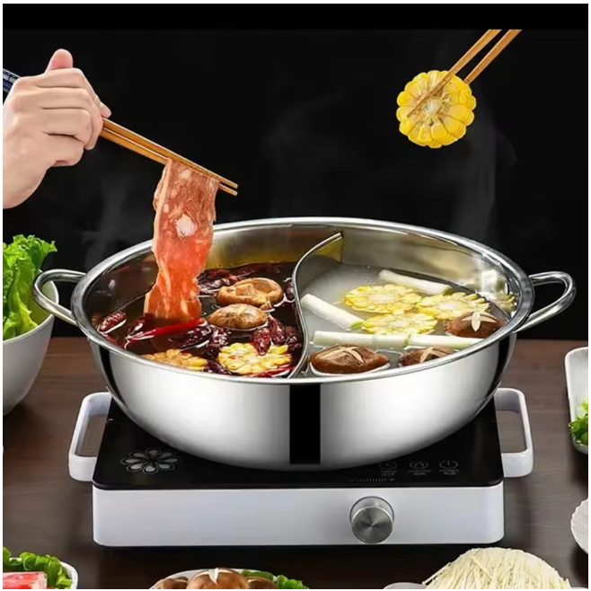 Til je kookervaring naar een hoger niveau met deze luxe RVS Twin Hot Pot. Dankzij de slimme verdeler bereid je moeiteloos twee verschillende smaken of soepen tegelijkertijd – perfect voor hotpot-avonden met vrienden of familie.